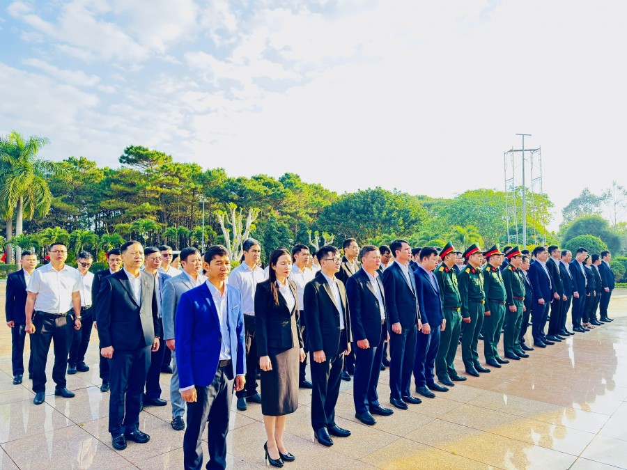 Các đồng chí trong Đảng ủy, Ban Giám đốc cùng cán bộ, nhân viên tham gia lễ viếng và lễ báo công