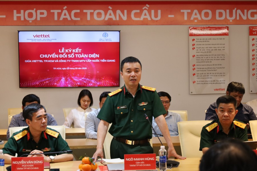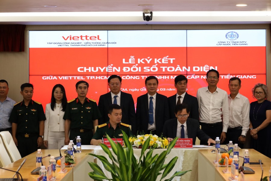 Trưa ngày 04/3/2026 tại Hội trường Tầng 19 Sảnh B, Toà nhà Viettel, Viettel TP.HCM và Công ty TNHH MTV Cấp nước Tiền Giang (TIWACO) đã chính thức ký kết Biên bản ghi nhớ hợp tác (về tư vấn, khảo sát, xây dựng và triển khai lộ trình chuyển đổi số tổng thể giai đoạn 2026–2030.