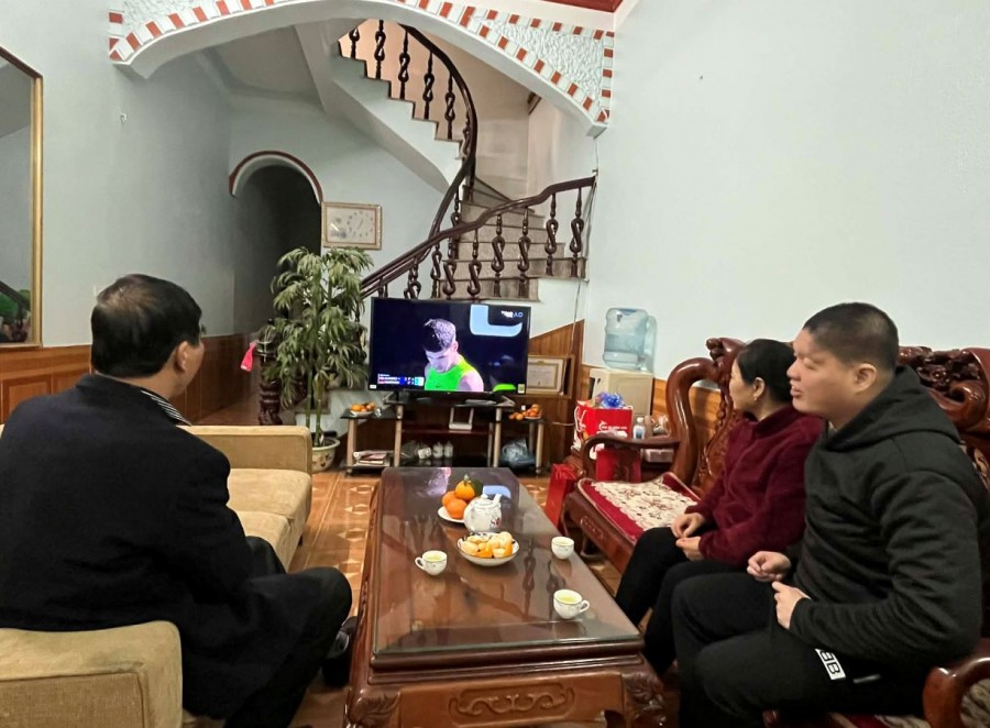 Dừng trước căn nhà của anh Nguyễn Trung Hiếu, chúng tôi đã nghe rõ giọng bình luận thể thao quen thuộc vang lên từ chiếc tivi trong phòng khách. Bên trong, cả gia đình đang quây quần theo dõi một trận quần vợt Úc Mở rộng phát trên TV360.